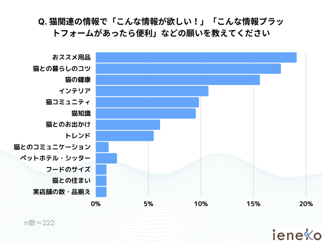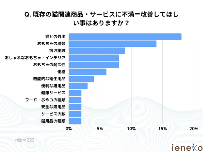 猫用品の開発・生産を手掛けて20年の実績を持つ「ieneko」(代表取締役:白井優毅 以下、当社)は、猫ユーザー222名にアンケート調査を実施しました。