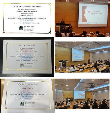 サステイナブルキャンパス推進協議会(CAS-Net JAPAN)が参加するASCN(アジア・サステイナブルキャンパス・ネットワーク)の2023年次大会において、岐阜大学、立命館大学、千葉大学の学生の活動が評価され、それぞれ賞を受賞しました。