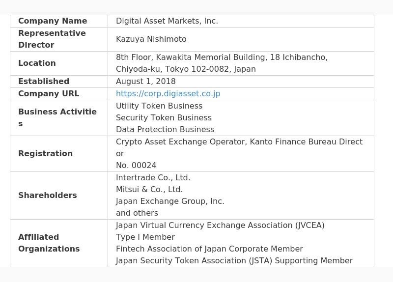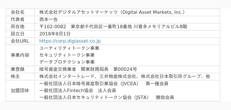 デジタルアセットマーケッツ会社情報