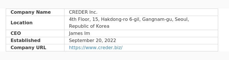 CREDER is Korea's first DX company to engage in RWA tokenization using physical gold as the underlying asset. Established in 2022, CREDER is a joint venture between ITCEN (KOSDAQ: 124500), a leading Korean IT services company and a member of the Busan Digital Asset Exchange (BDX) consortium, and BPMG, a blockchain development company.