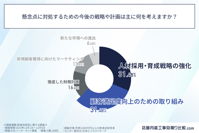 人事に関する回答としては、当然のことながら「人材採用・育成戦略の強化」が票を集めていましたが、「顧客獲得」に関するさまざまな対処方法としては、「顧客満足度を上げるための取り組み」が最も多い結果となりました。