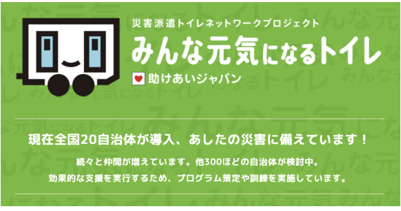 一般社団法人助けあいジャパンが運営する「災害派遣トイレネットワーク」は、この参加により合計20自治体のネットワークとなります。