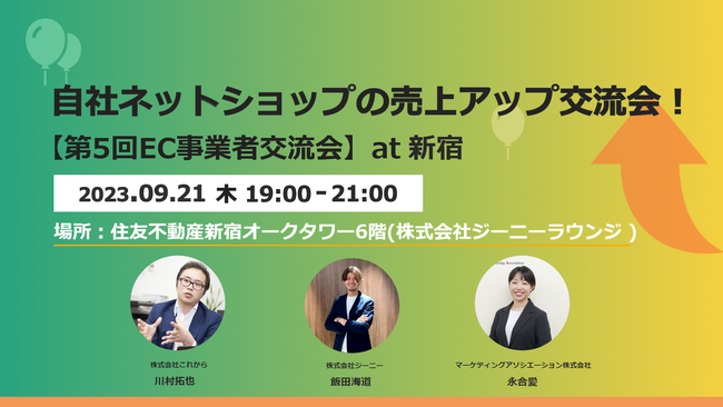 ECサイトの運営代行サービスを提供しているマーケティングアソシエーション株式会社(本社:東京都台東区 代表取締役:中園広和、以下当社)は、2023年9月21日(木)にリアルイベント「自社ネットショップの売上アップ交流会!【第5回EC事業者交流会】」を、株式会社ジーニー、株式会社これからと共催いたします。