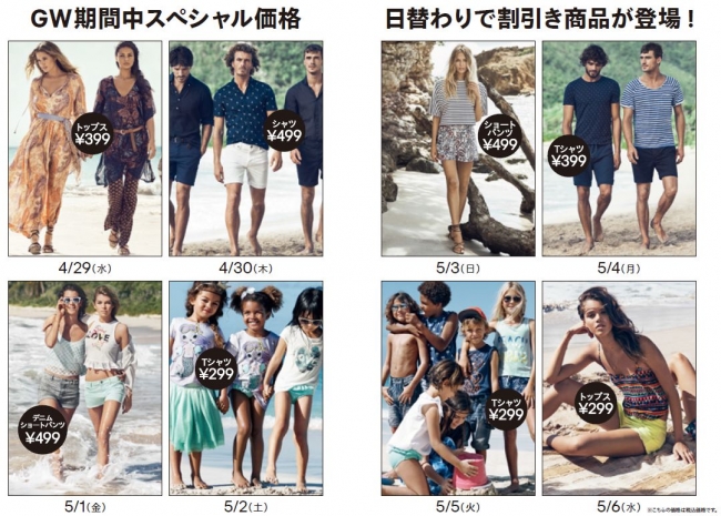 GW中毎日、日替わりアイテムをスペシャルプライスで展開!金額は、なんと¥299から!
