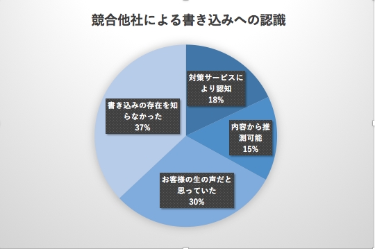 弊社調べでは、弊社に風評被害の件でご相談いただいた企業様の中でも、競合他社による書き込みの存在に気づいていたのは全体の3割となっています。