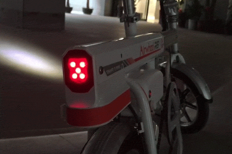 夜間走行時に必要なヘッドライトも用意し、レバーにあるボタンを押しすれば真っ暗な帰り道を明るく照らします。ブレーキをかけるとリアライトを点滅し、後続車両に減速を知らせて追突事故を防ぐことができます。