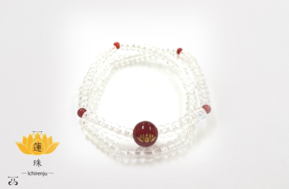 また、一般的な腕輪念珠の玉数は10〜30個であるのに対し、一蓮珠の玉数は108個です。この108という数は、各宗派の正式なお念珠と同じであるため、一蓮珠は腕輪念珠としても正式な数珠としてもお使いいただけます。