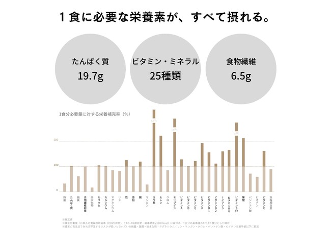 ※完全栄養:厚生労働省「日本人の食事摂取基準」に基づき、1食に必要な栄養素がすべて摂取できること