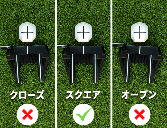これらのように、スクエアフェースで打てばまっすぐ進みますが、オープンなら右に、クローズなら左に大きく逸れていくため自分のミスが一目でわかるようになっています。