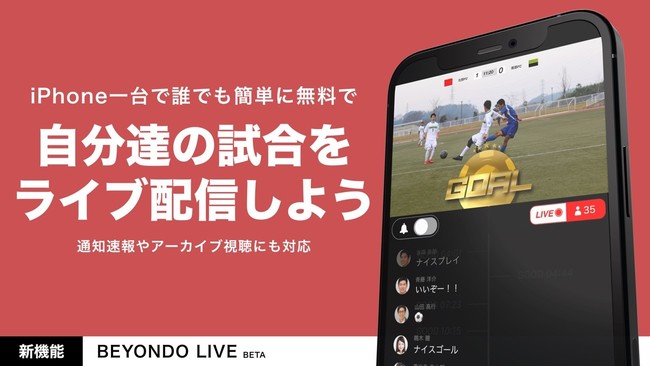 Beyondo Media Inc.(CEO:奥田哲生、以下「ビヨンドメディア」)は、サッカーの試合をスマートに撮影し、共有して楽しめるiPhone/iPad用ビデオアプリ「BEYONDO」(ビヨンド)に、ライブ配信機能を追加した最新版を公開しました。