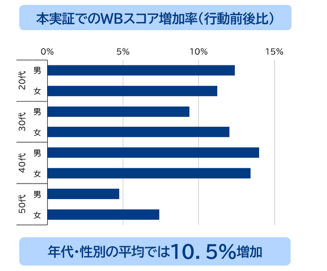 実証実験の結果: ウェルビーイング(WB)スコアは約10%上昇