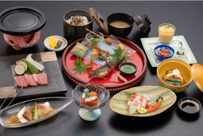 6月1日よりご提供する夏の会席料理に、ミニ和傘を添えたデザートをご提供いたします。夏の旬やA5飛騨牛など岐阜の滋味を味わう会席料理の締めくくりとして、ご賞味ください。
