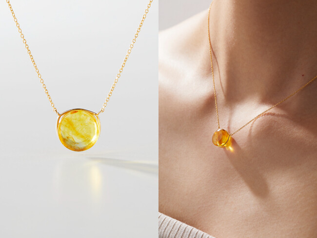 『リファインドアンバー』と『K18ゴールド』のペンダント