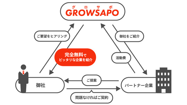 完全無料で御社の成長を支援する企業(発注先)を紹介するGROWSAPO(グロサポ)の提供を開始
