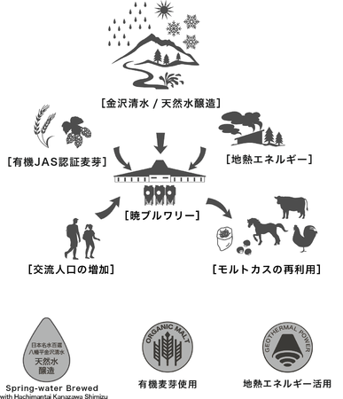 また醸造後の麦芽を近隣の動物の飼料や農作物の肥料へ再利用するなど循環型ブルワリーを目指し、