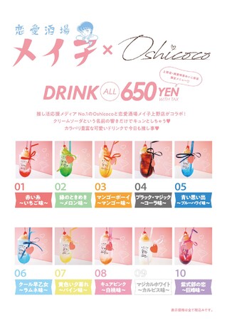 6.5万人フォロワー「推し活応援メディア」と推し活専門オンラインストアを運営する株式会社Oshicoco(本社:東京都渋谷区、代表取締役:多田夏帆)は、『恋愛酒場メイ子 上野店』『純愛喫茶めいこ 渋谷店』と「推し活」をテーマにしたコラボレーションメニューを8月6日(土)より提供し、ご好評いただいております。