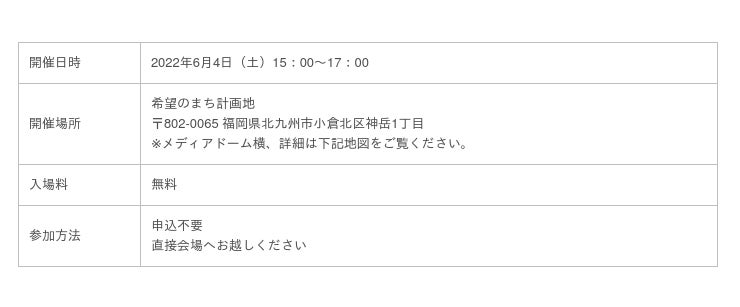 6/4 北九州市イベント概要 希望のまちプロジェクト進捗報告会&みんなのにわづくりキックオフイベント