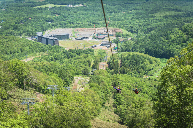 総滑走距離2,591mの3本のジップラインを滑走する世界最大級のジップツアー。最長ジップライン「MACH 3 (マッハスリー)」は全長1,700mに及び、最高時速は110kmを超えるスピードに達する、世界でも有数のスリリングな「FLIGHT(飛行)」体験を味わうことができます。ジップラインは2本並んで張られているので、友人や家族と一緒に体験することも可能。北海道のランドマーク羊蹄山や見渡す限りの絶景を空からご体感ください。