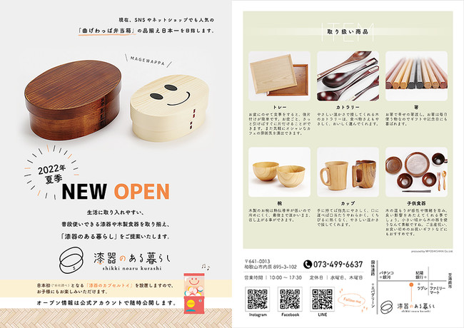 楽天市場やYahoo!ショッピングで月間MVP受賞の株式会社三好漆器が、初のリアル店舗の直営店、「漆器のある暮らし」を和歌山市にオープンいたします。オープンは2022年夏を予定です。曲げわっぱ弁当箱の品揃え日本一を目指し、また日本初の木製漆器のカプセルトイを設置し、お子様も楽しめる店舗づくりを行います。幅広い世代に漆器のある暮らしを広げ持続可能な伝統工芸にも貢献します。