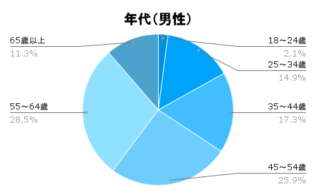 女性67.5%、男性32.5%と女性からのフォローが多いアカウントです。また、年代においては、女性は幅広い年代からフォローされているのに対し、男性は45〜64歳がボリュームゾーンとなっております。