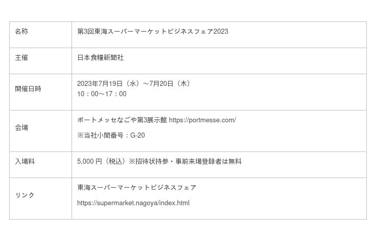 出展のお知らせ「東海スーパーマーケットビジネスフェア2023」(2023 年 7 月 19 日〜7 月 20 日)- カーボンニュートラル実現につながる潜熱・顕熱分離空調機器の普及を目指す -