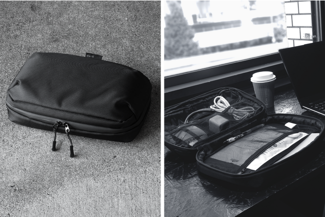必需品を整理できバッグインバッグとして活躍するアイテム。ケーブル、マウス、バッテリーなどのPC周辺機器に加え、ペンや手帳もすっきり収納できる大容量タイプです。背面にはクッションポケットを備えているので10インチ程度のタブレットを収納することもできます。