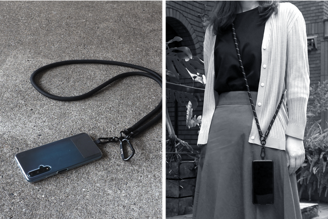 付属の薄いホルダーをスマホ本体とケースの間に挟むだけで手軽にストラップホールを作ることができるため、ストラップホールのないスマホケースにも装着することができます。