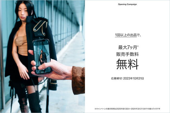 iOSアプリの正式リリースを記念して、2023年8月30日〜10月31日のあいだに出品を1回以上おこなうと、2023年8月30日〜2024年3月31日までの販売手数料が最大7ヶ月無料になるオープニングキャンペーンを開催いたします。(応募締切:2023年10月31日)