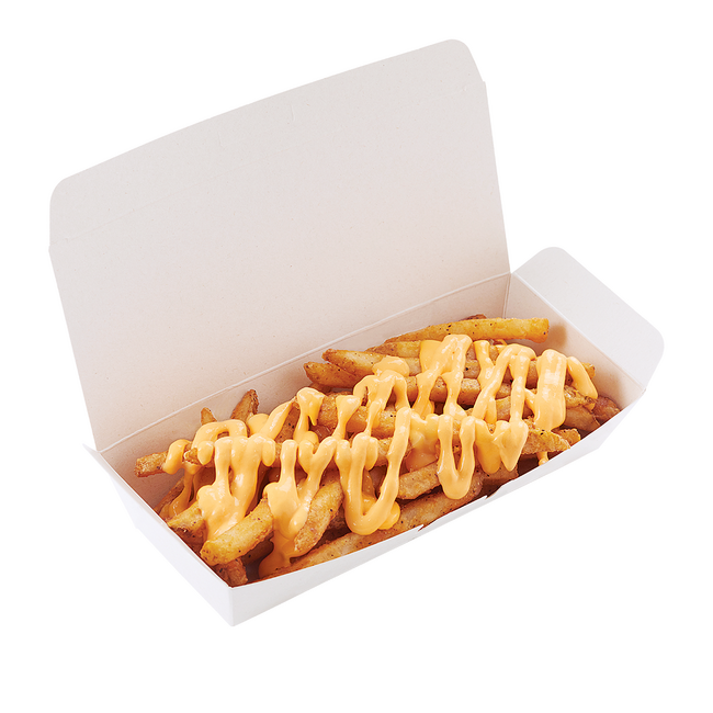 ディープチーズソースをフライドポテトの上にたっぷりかけました。