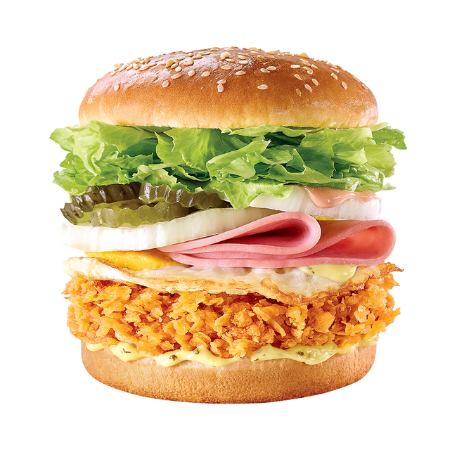 インクレディブルバーガーは、プレミアムなダブルハムのスライスが2枚、目玉焼き、鶏もも肉のパティ、サクサクのレタス、玉ねぎ、ピクルスが特徴です。サウザンドアイランドソースとハーブソースで完璧に仕上げられています。その名前の通りの素晴らしいバーガーです。