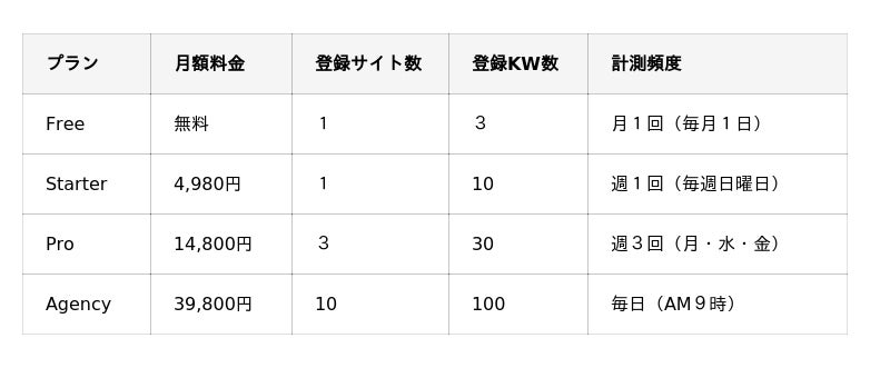 ※登録サイト数、キーワード数無制限のエンタープライズ版についてはお問い合わせください。