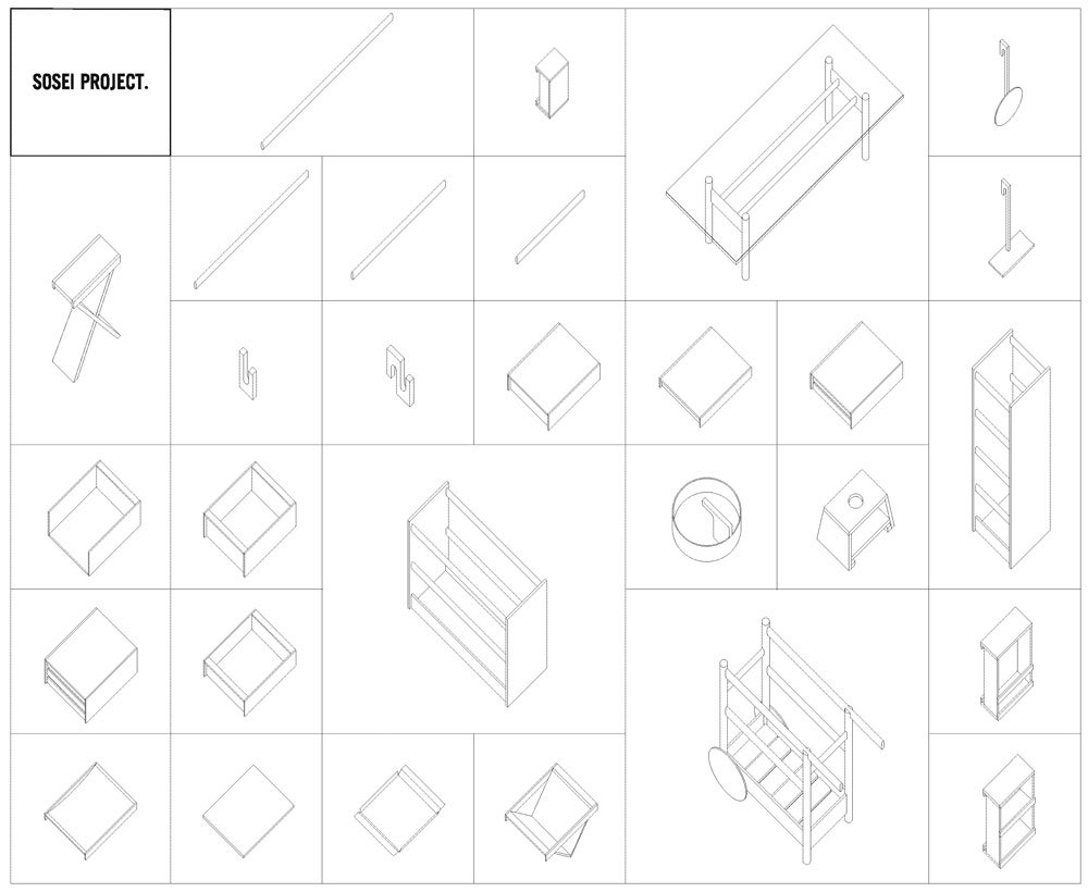 SOSEI PROJECT.は、現代の暮らしを見つめ直し、「そこにあるべき家具・道具とは何か」を問いながら導き出されました。それは、プロダクトとしての美しさを保ちながらも、ユーザー自身の選択や組み合わせによって空間が蘇り、無限の可能性へと拡張していく思想を表しています。ブランド名にある「SOSEI」は、「組成」「蘇生」「素性」に由来し、暮らしに応じて姿を変え、再び生まれ、素直に自分らしい空間を構築できることを意味しています。