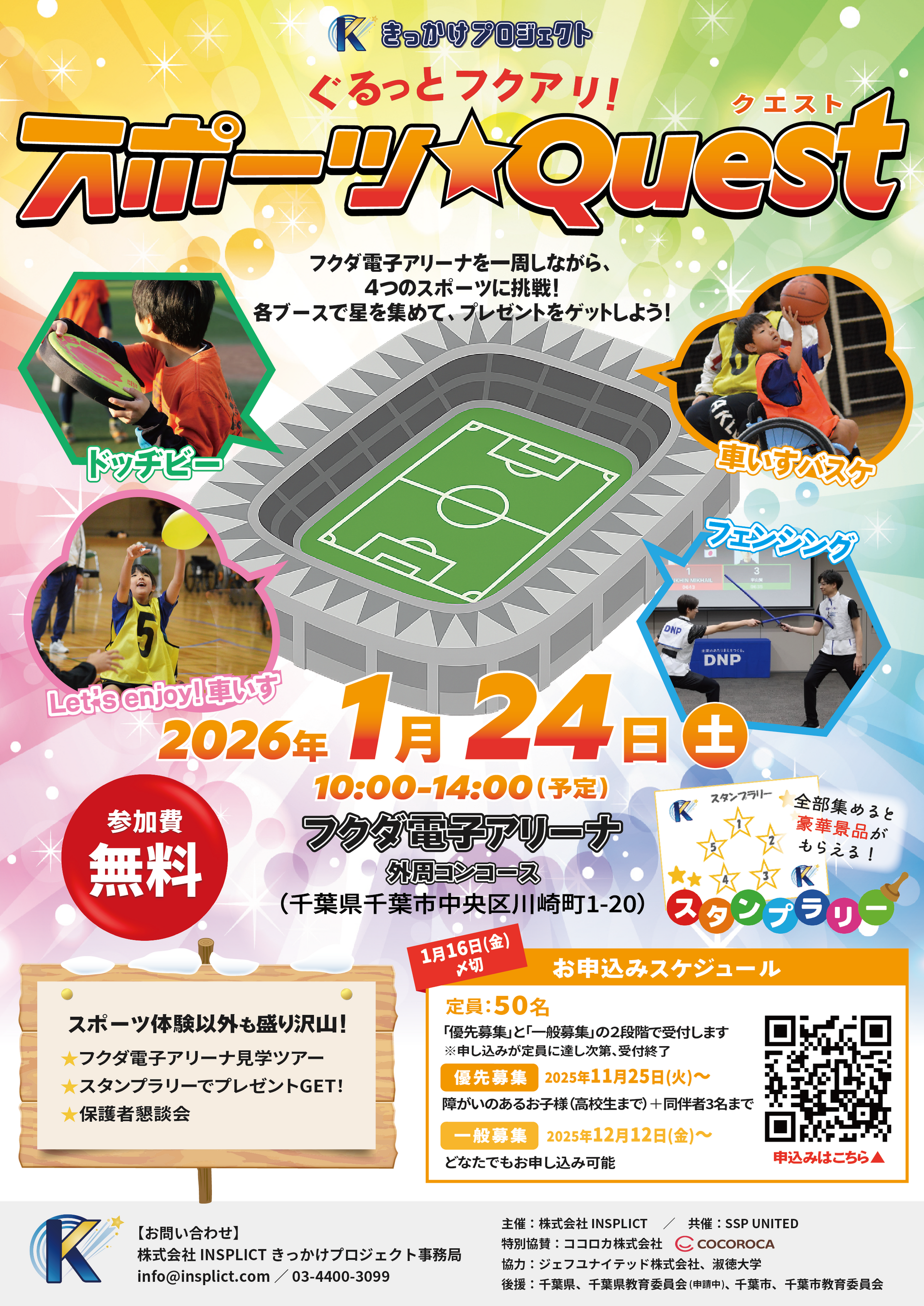株式会社INSPLICTは、2026年1月24日(土)にフクダ電子アリーナにて、きっかけプロジェクトpresents「ぐるっとフクアリ!スポーツ★Quest」を開催いたします。