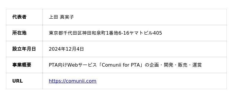 [表2: https://prtimes.jp/data/corp/166021/table/6_2_d65e39724780374358daf455ce37e47d.jpg?v=202512250415 ]■株式会社Comunii 概要