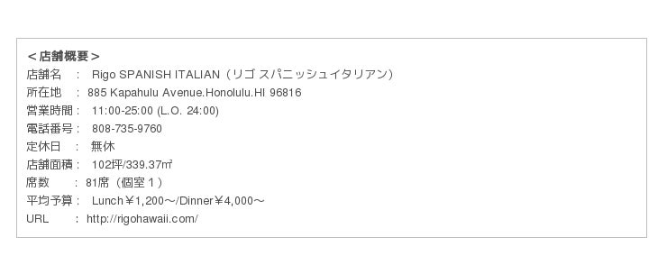 6月1日(土)海外初出店!ハワイ オアフ島にオープン「Rigo SPANISH ITALIAN」