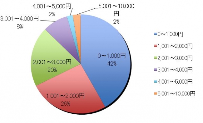 昨年、娘がチョコレートをあげたときにかけた総額について尋ねたところ、「0〜1,000円」が最多で42%。それに「1,001円〜2,000円」が26%、「2,001円〜3,000円」が20%と続き、全体の9割が3,000円以下であったことが判明しました。最近の親は子どもに甘いと思われがちですが、実際には堅実であることがうかがわれます。