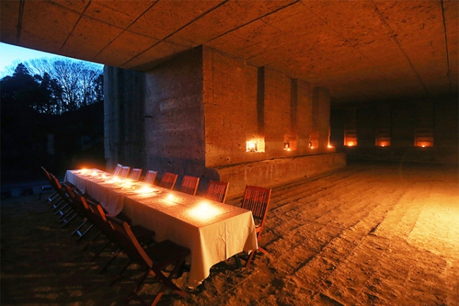 ディナータイムももちろんこの「大谷採掘場」で。石に囲まれた空間では、雨の心配もございません。