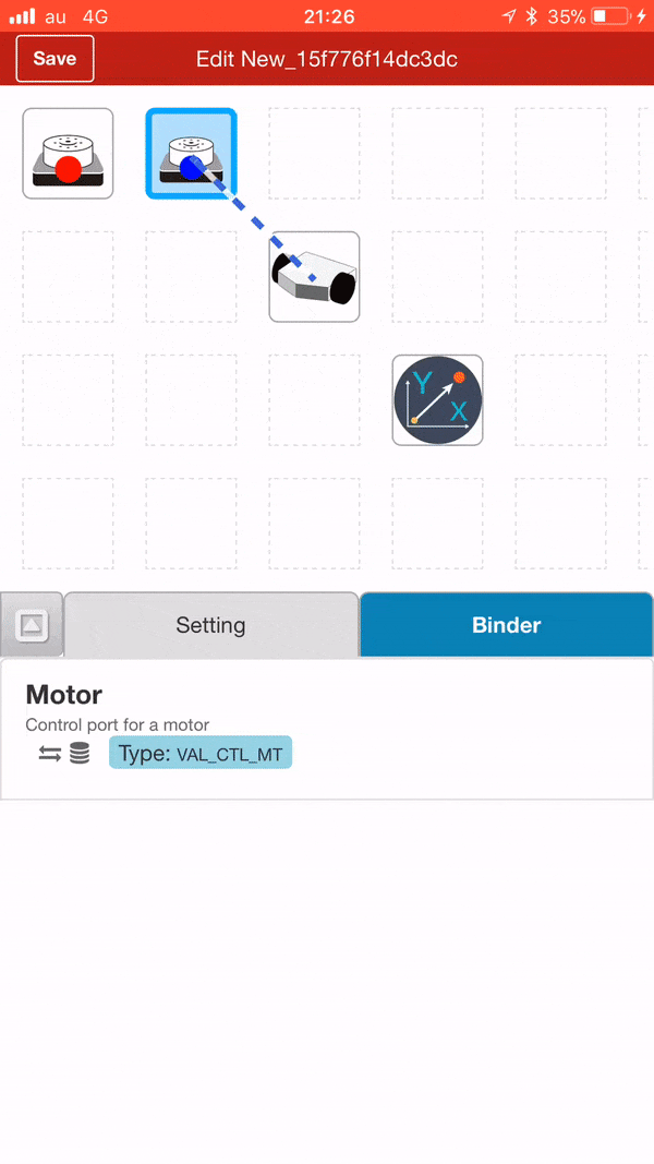 専用アプリ「KeiganCore」を使用すると、アイコンをドラッグする直感的な操作により、複数の Keigan Motor に簡単なロボットの機能を割り当てて、リアルタイムに制御することが可能となります。