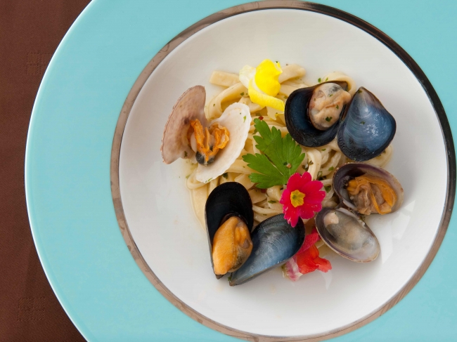 北海道産3種貝と沖縄産青さのりのタリアテッレ