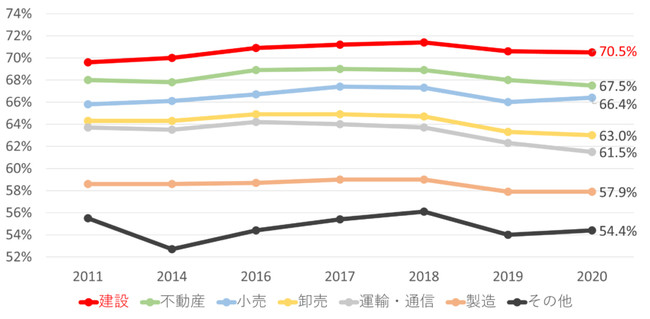 また、「30代未満」の後継者不足推移において全業種の中、唯一70%を超えている業種です。