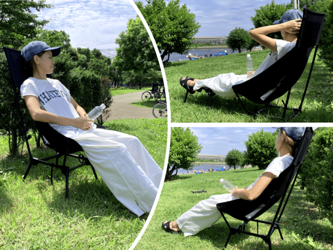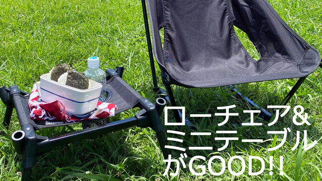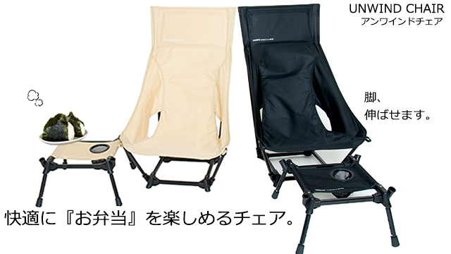 「公園ランチや室内リモートに」ローハイ切替可能、テーブルと足置きの1台4役のチェア。 『UNWIND CHAIR(アンワインドチェア)』Makuake(マクアケ)より2022.09.23リリース。