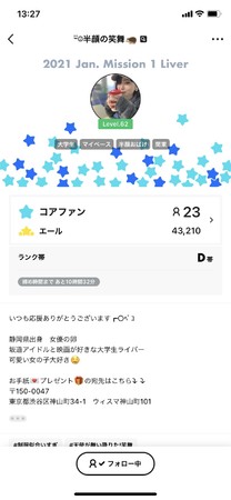 ライブ配信事務所LIVEWITH所属ライバー『¨???半顔の笑舞?』11月開催自社イベント【コアファン獲得イベント(E1ランク~D3ランク】で見事優勝