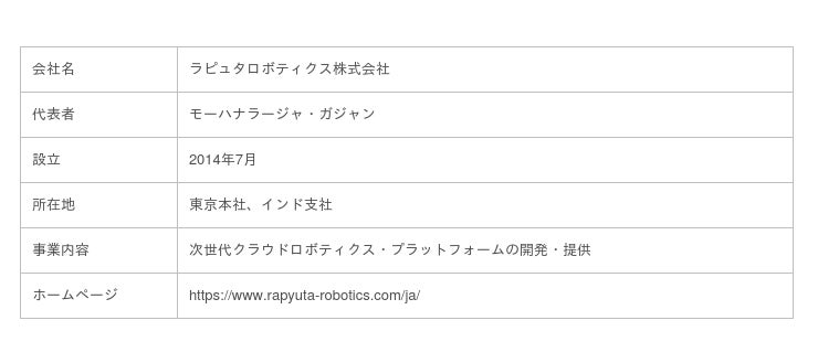 ラピュタロボティクスは、チューリッヒ工科大学発のスタートアップ企業です。「ロボットを便利で身近に」(「Making robotics attainable and useful for anyone」)をビジョンとして掲げ、世界最先端の制御技術および人工知能技術を活用した次世代クラウドロボティクス・プラットフォーム「rapyuta.io」の開発と「rapyuta.io」を活用したロボットソリューションの開発・導入・運用支援を行っています。