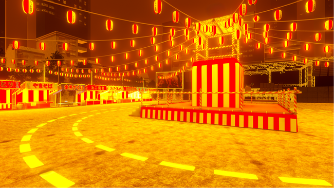 “VRおしゃれ盆踊り“では“おしゃれ盆踊り“と同様に野宮真喜様がご提供する「東京は夜の七時〜盆踊りver」に乗せてVRを楽しむ皆様が盆踊りをお楽しみ頂けます。