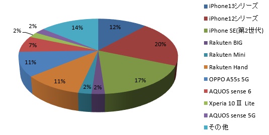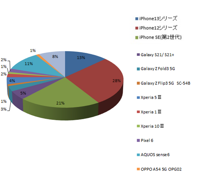 iPhone12といえば2020年に発売されたiPhoneですが、2021年に発売された新型のiPhone 13よりも購入数が多いという結果になっています。