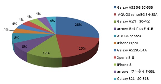 結果をみると、Redmi Note やOPPOなど、特定のキャリアでしか購入できない機種がよく選ばれていることがわかります。