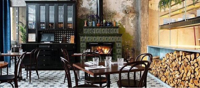 Mantel ja Korsten、タリン - この羽目板張りの建物は「マントルと煙突」を意味し、本物の絵はがきのような外観をしています。 明るく大胆なデザインが施された部屋の中心には、緑のタイル張りの暖炉とマントルピースが置かれています。 地中海風の料理には、オーガニックをな厳選されたビオワインが添えられます。
