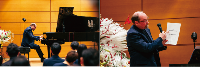 ヴォイチェフ・シフィタワ氏は、ショパン作曲「スケルツォ 第2番」と、世界初演となるラファウ・アウグスティン作曲「4つのマズルカより 第3番」を演奏。同氏からは「音楽を愛する人を育てるのは素晴らしいことです」との言葉もあり、音楽を通したポーランドと日本の友好関係を改めて感じられたひと時にもなりました。
