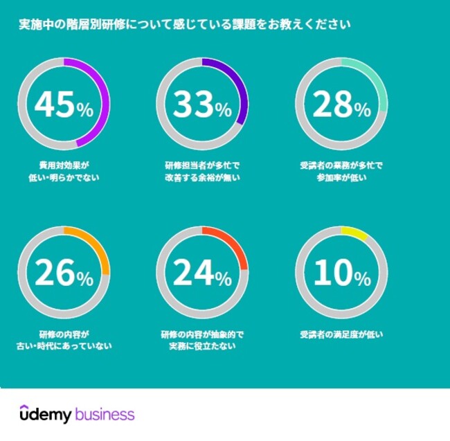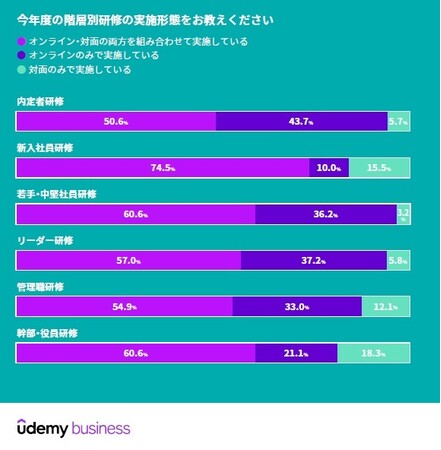 オンライン学習・教育のリーディングカンパニーであるUdemy(ナスダック:UDMY)は本日、社員を階層別に分けて実施する社内教育の一部である「階層別研修」について、日本の企業116社を対象にその内容や課題を調査した「階層別研修の現状と課題調査結果 2022(※1)」を発表しました。