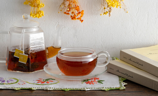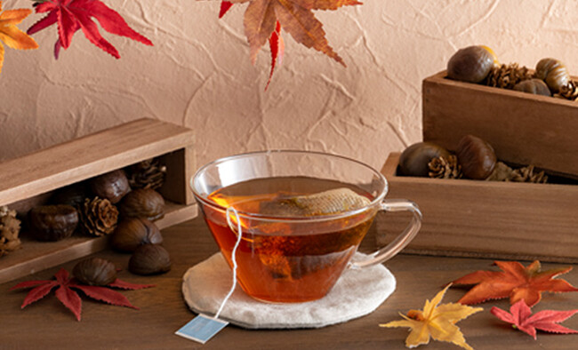 ルイボスグリーンとレッドのやわらかい味わいに、ホクホクした和栗のやさしい香り。